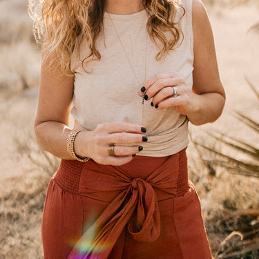 I'm wearing the long pendant on the 28" chain, and the vintage 1970s ring. Model is wearing the long pendant as well, with the gila necklace (small/16inch).